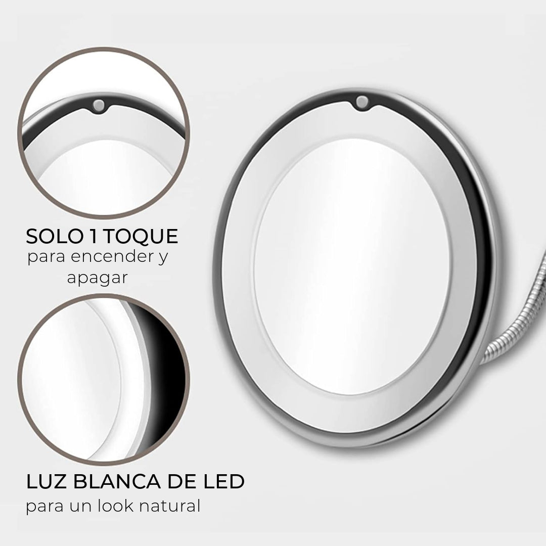 Aumento 10X para Detalles Extremados: Con un aumento de 10x, el MagnifyPro X10 revela cada pequeño detalle de tus ojos, facilitando una aplicación de maquillaje precisa y una revisión minuciosa de tu piel.